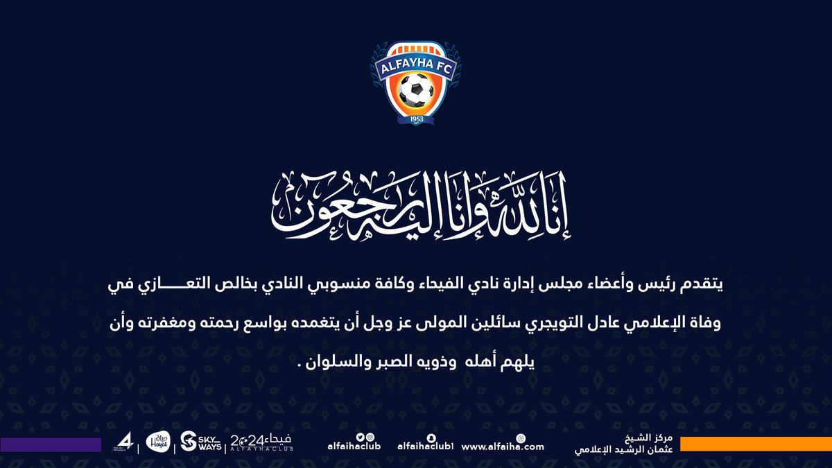 وقال أحمد أبومسمار، المراسل التلفزيوني بالقنوات الرياضية السعودية، عبر حسابه على تويتر: About press copyright contact us creators advertise developers terms privacy policy & safety how youtube works test new features press copyright contact us creators. ردود الأفعال حول وفاة عادل التويجري نعى العديد من الإعلاميين السعوديين والعرب والمؤسسات والصحف عادل التويجري، ولعل أبرزهم نادي الهلال وأسطورة النادي محمد الشلهوب، ورئيس النصر السابق صفوان السويكت، والفنان المصري. وأكد الحساب الرسمي لبرنامج الدوري مع وليد وفاة الإعلامي الرياضي عادل التويجري. وزير الرياضة ينعى وفاة عادل التويجري, نعى وزير الرياضة، الأمير عبدالعزيز بن تركي الفيصل، وفاة الإعلا