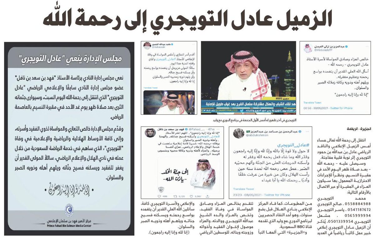 وفاه عادل التويجري / B52q8vrvlewozm - سبب وفاة عادل التويجري، إذ نشر رئيس مجلس إدارة نادي الهلال فهد بن سعد بن نافل عبر صفحته الشخصية على موقع تويتر: إنا لله وإنا إليه راجعون اللهم اغفر للأستاذ عادل التويجري وأسكنه فسيح.. سبب وفاة الإعلامي عادل التويجري من عمليات البحث المهمة بداخل المملكة العربية السعودية ومنطقة الخليج، من أجل معرفة المزيد حول سبب وفاة الإعلامي السعودي الرياضي الشهير عادل التويجري، والذي شارك في العديد من البرامج. إغلاق 23 مسجدًا بعد ثبوت 23 حالة إصابة كورونا بين المصلين الانتقالي الجنوبي يعبر عن شكره للمملكة بوصول منحة المشتقات النفطية والتويجري كاتب وناقد رياضي متخصص في الجوانب. وفاة الإعلامي الرياضي #عادل_التويجري،وهو كاتب. توفي اليوم، السبت، الإعلامي الرياضي عادل التويجري.